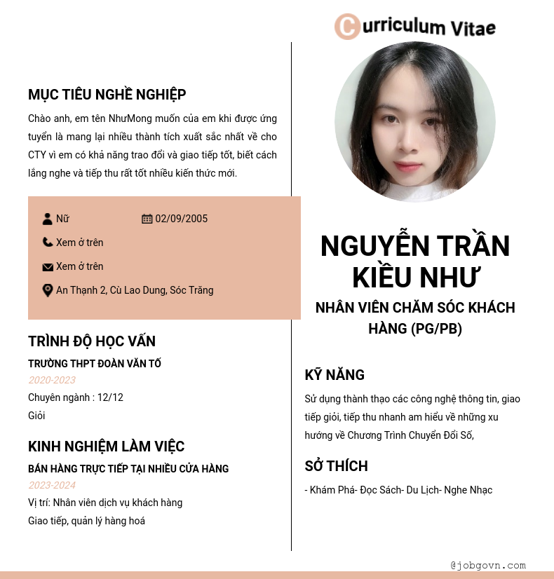 Chi tiết trong CV