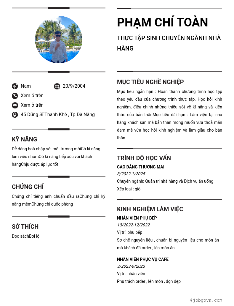 THỰC TẬP SINH CHUYÊN NGÀNH NHÀ HÀNG