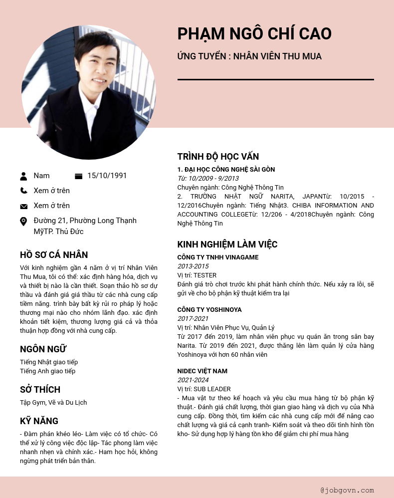 ứng tuyển : nhân viên thu mua