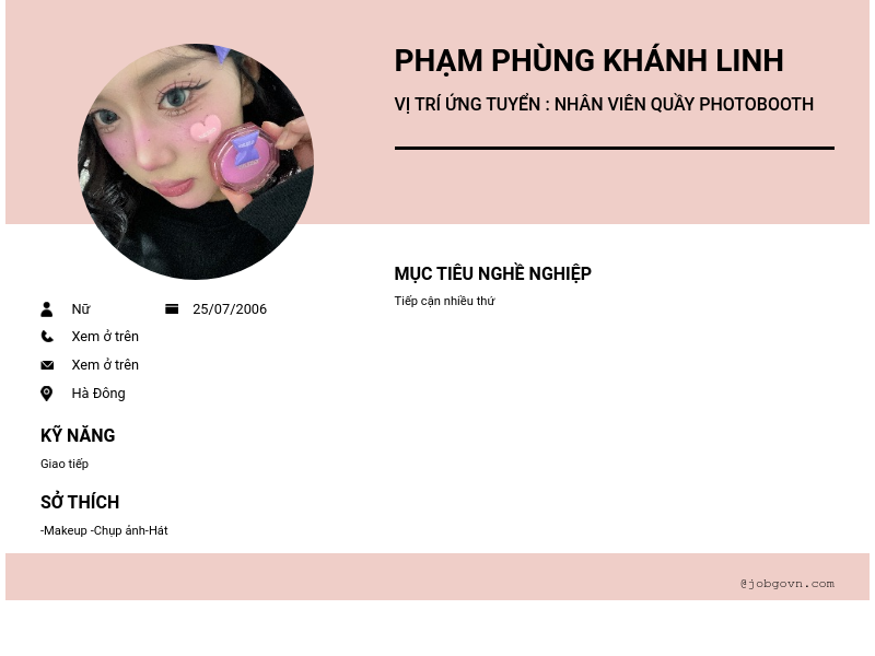 Vị trí ứng tuyển : Nhân viên quầy photobooth