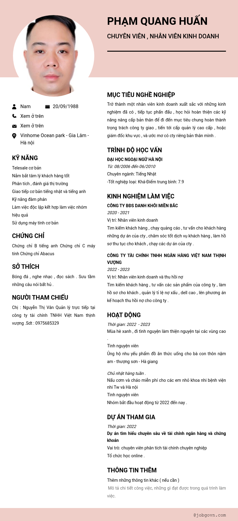 Chi tiết trong CV