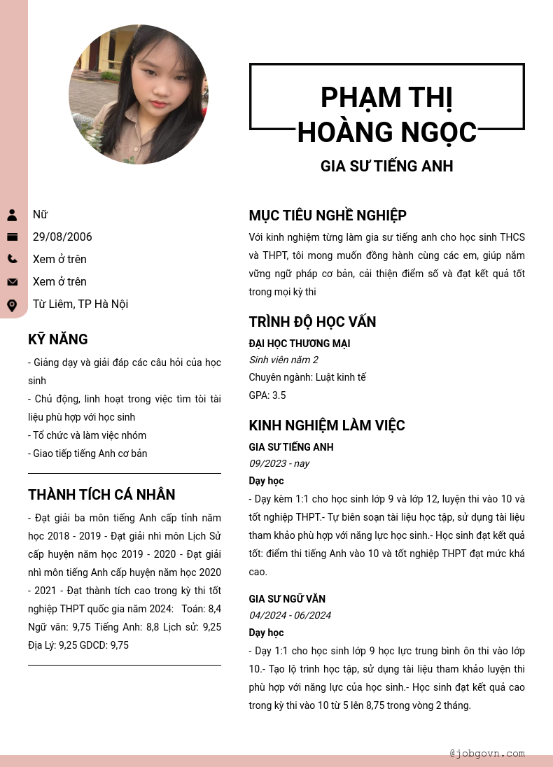 Chi tiết trong CV