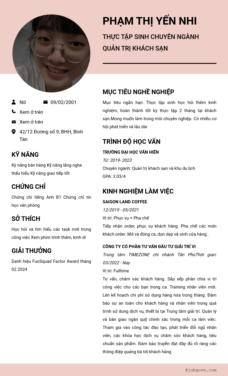 Thực tập sinh chuyên ngành quản trị khách sạn