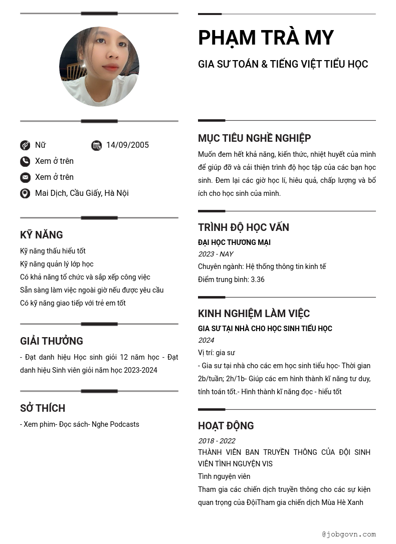 Chi tiết trong CV