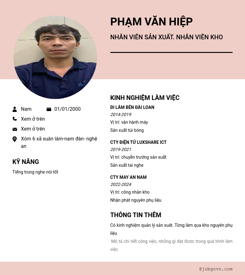 Chi tiết trong CV