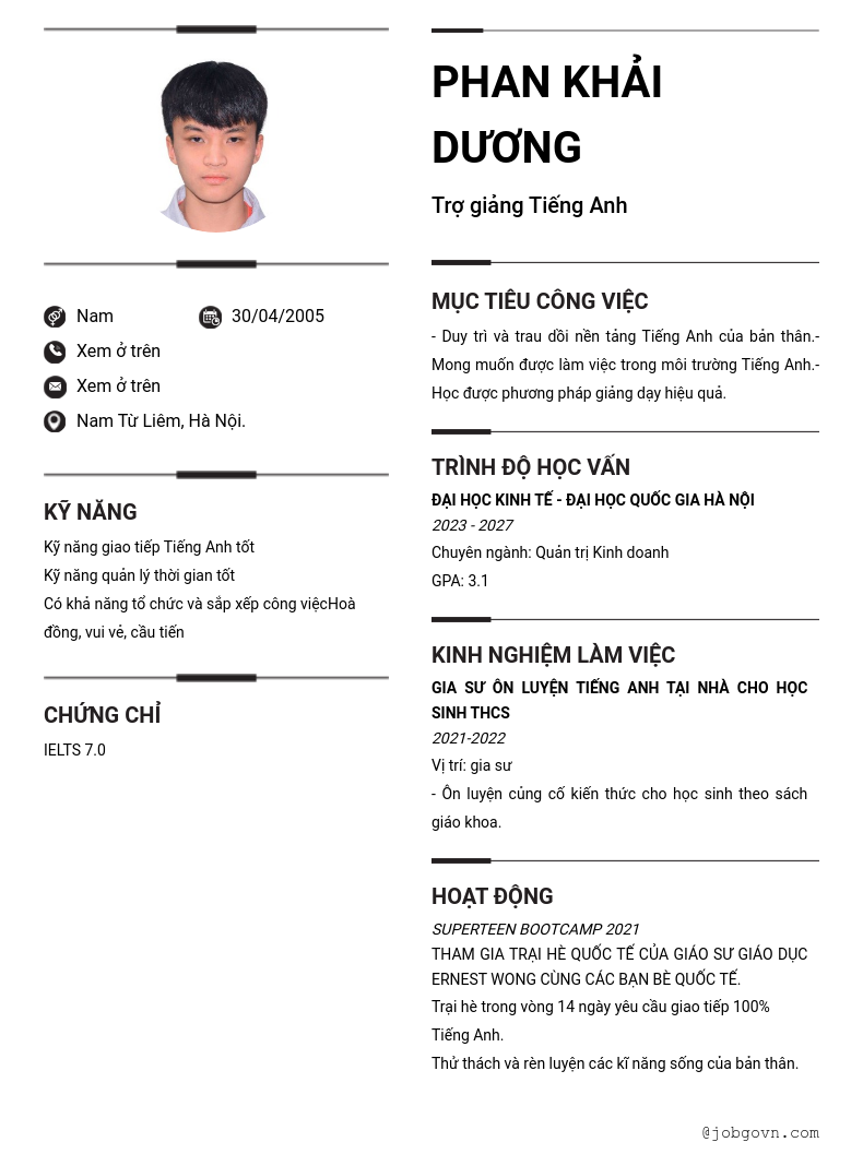 Trợ giảng Tiếng Anh