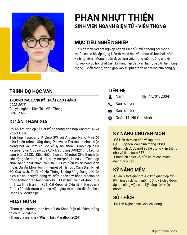 Chi tiết trong CV