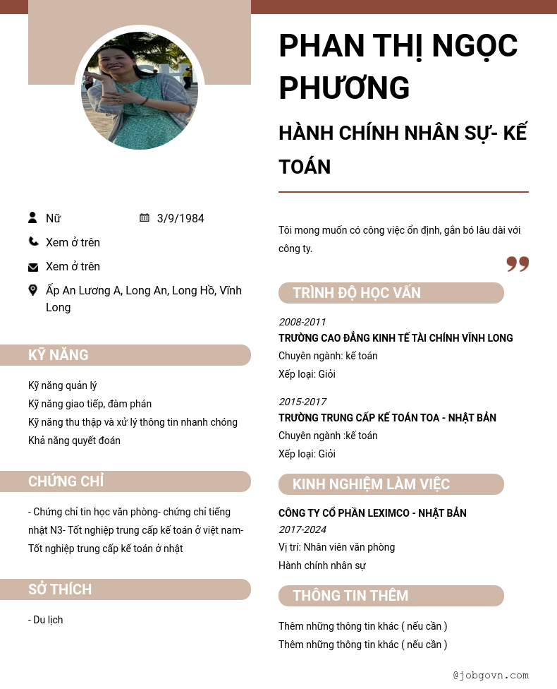 Chi tiết trong CV