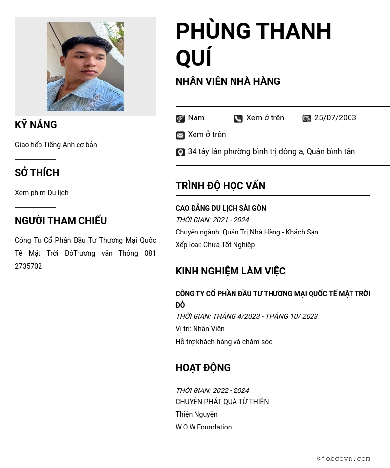 Nhân Viên Nhà Hàng