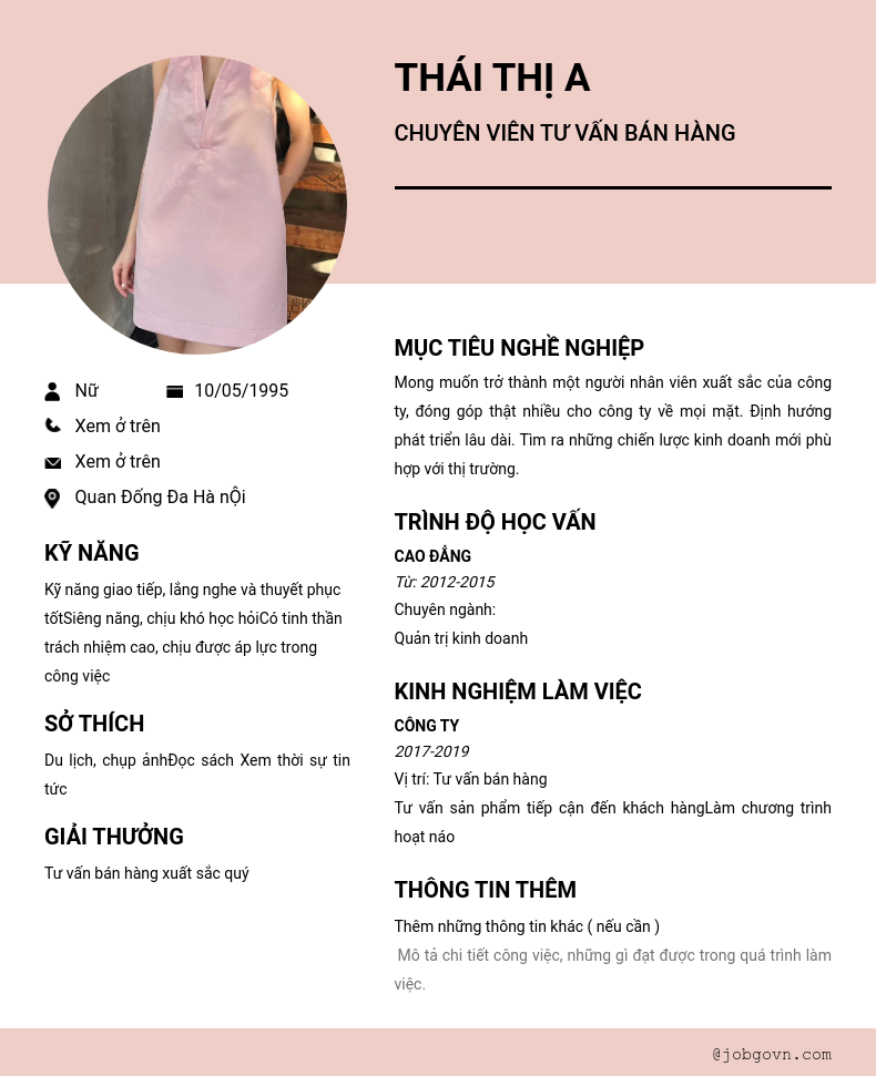 Chi tiết trong CV