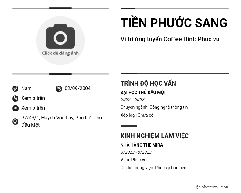Chi tiết trong CV