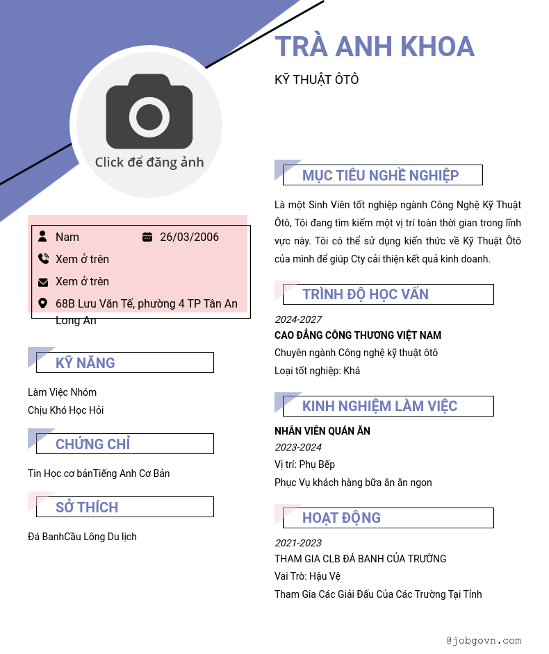 CV đã tạo
