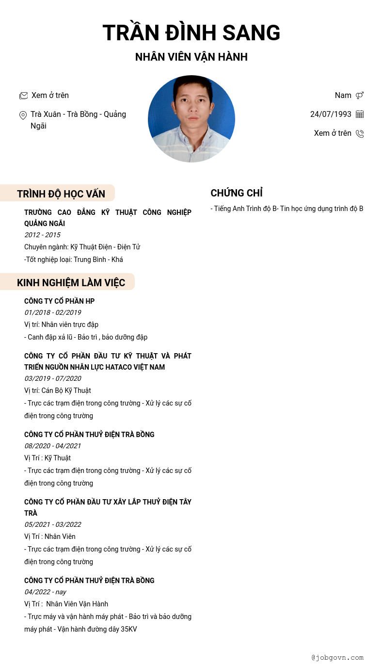 Chi tiết trong CV
