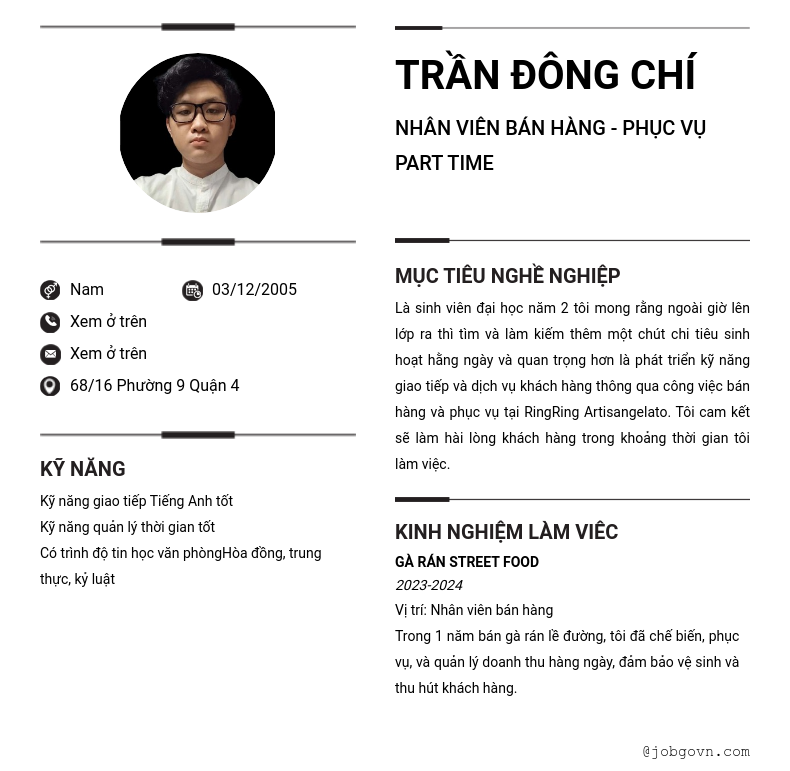 NHÂN VIÊN BÁN HÀNG - PHỤC VỤ PART TIME