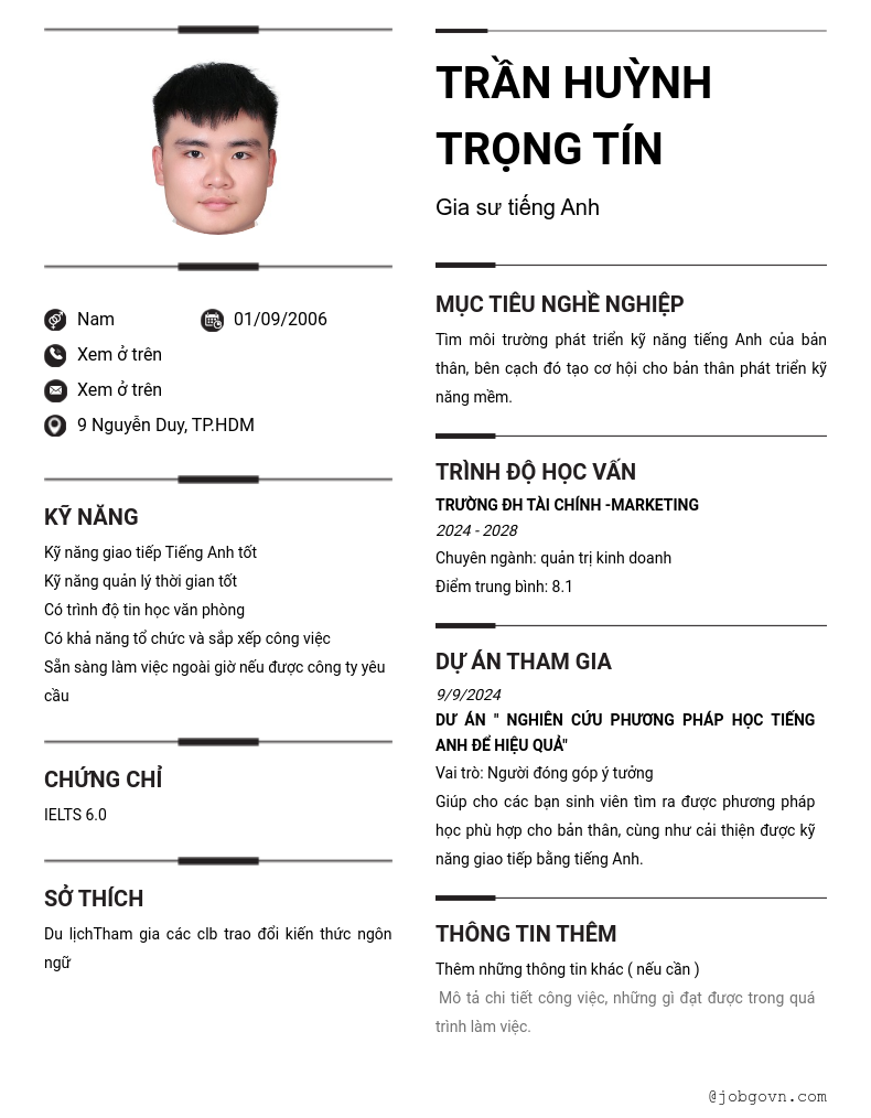 Chi tiết trong CV