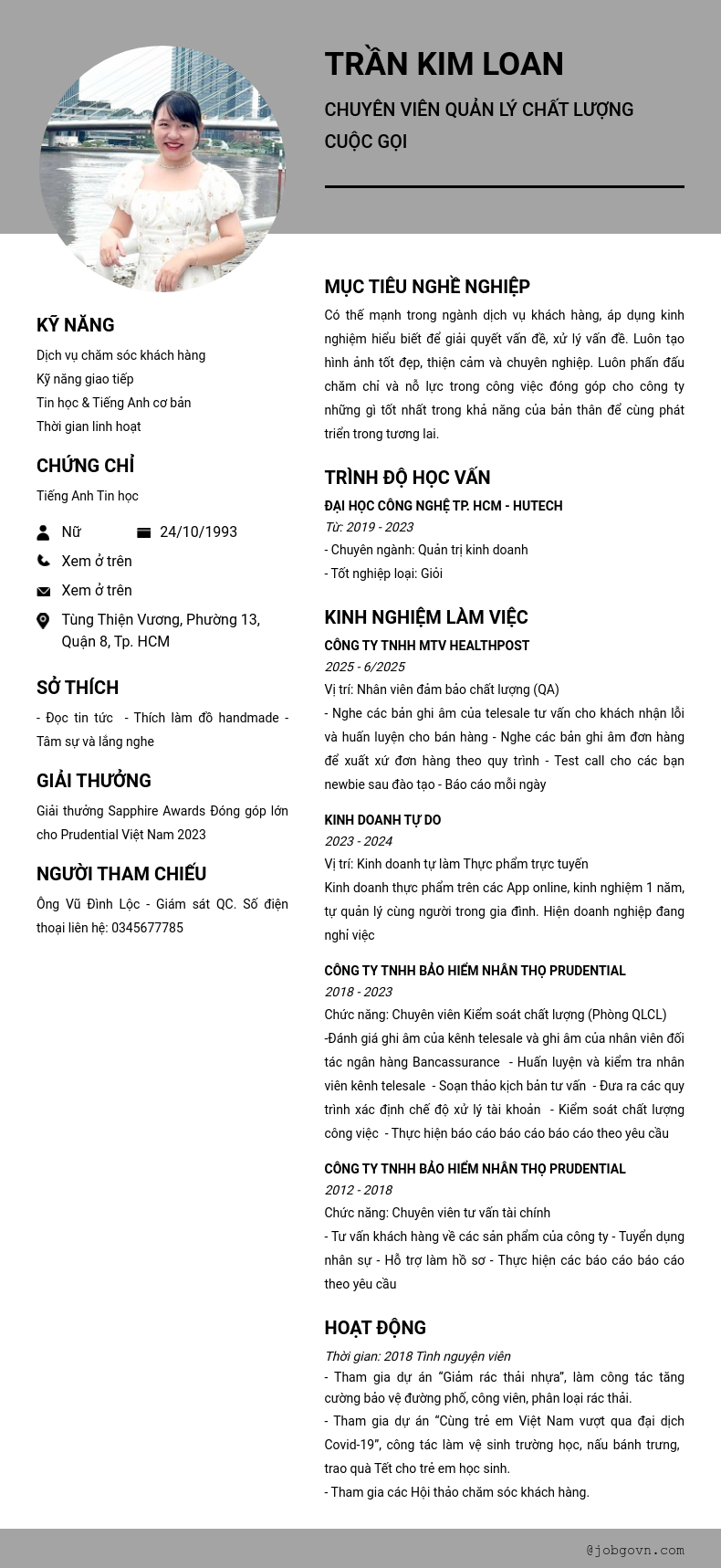 CHUYÊN VIÊN QUẢN LÝ CHẤT LƯỢNG CUỘC GỌI