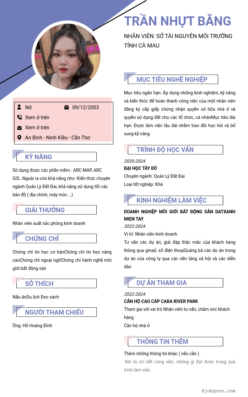 Nhân viên: Sở Tài Nguyên Môi Trường Tỉnh Cà Mau