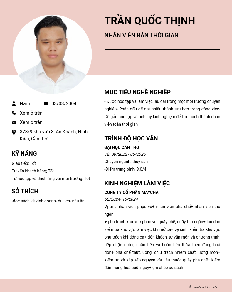 Chi tiết trong CV