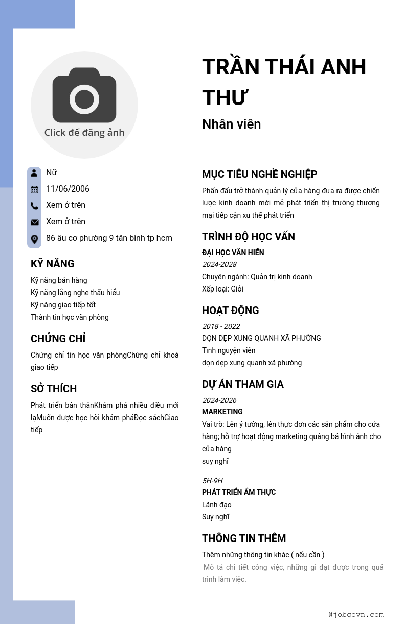 CV đã tạo
