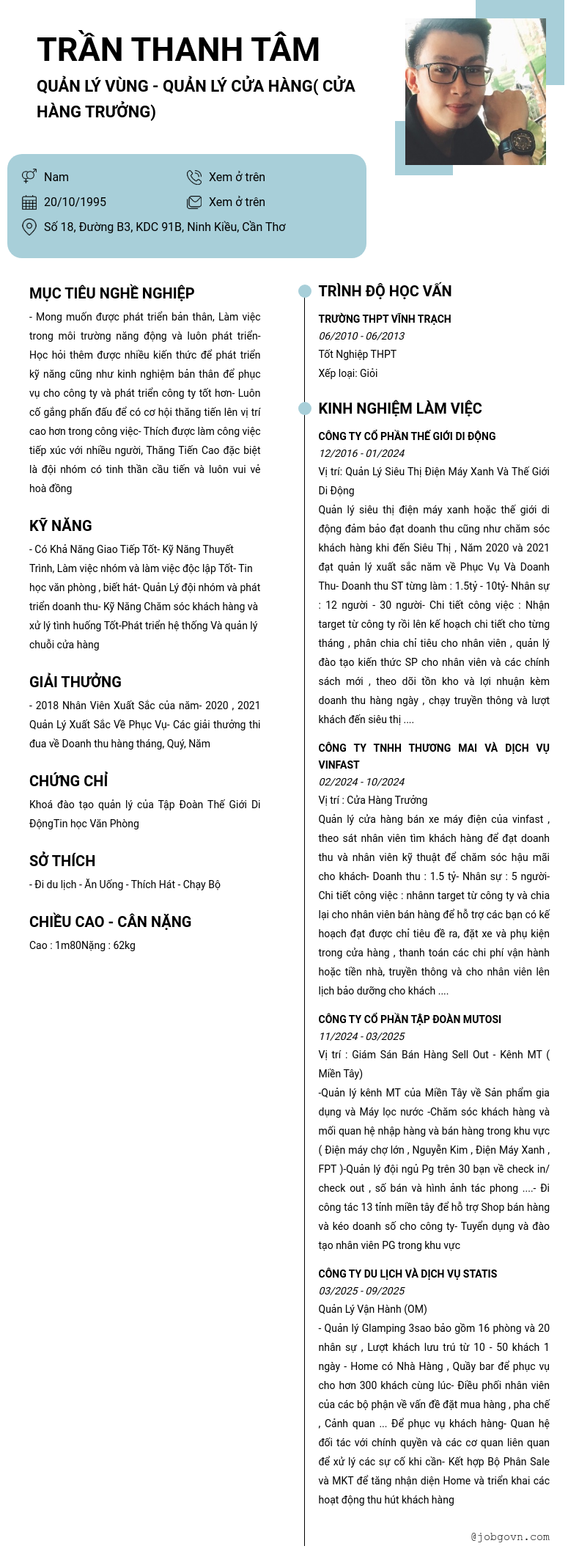 Quản Lý Vùng - Quản Lý Cửa Hàng( Cửa Hàng Trưởng)