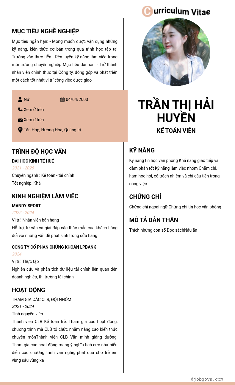 TRẦN THỊ HẢI HUYỀN (Đang tìm việc)
