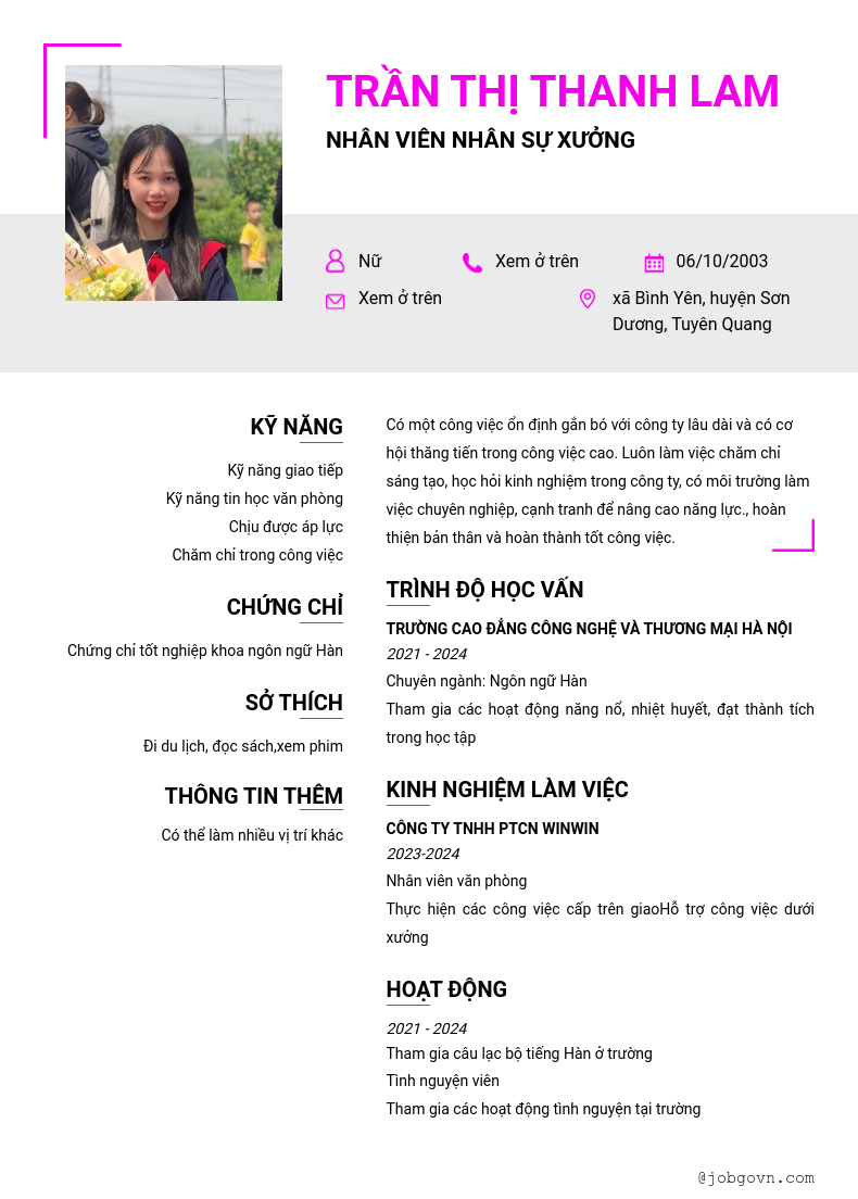 NHÂN VIÊN NHÂN SỰ XƯỞNG