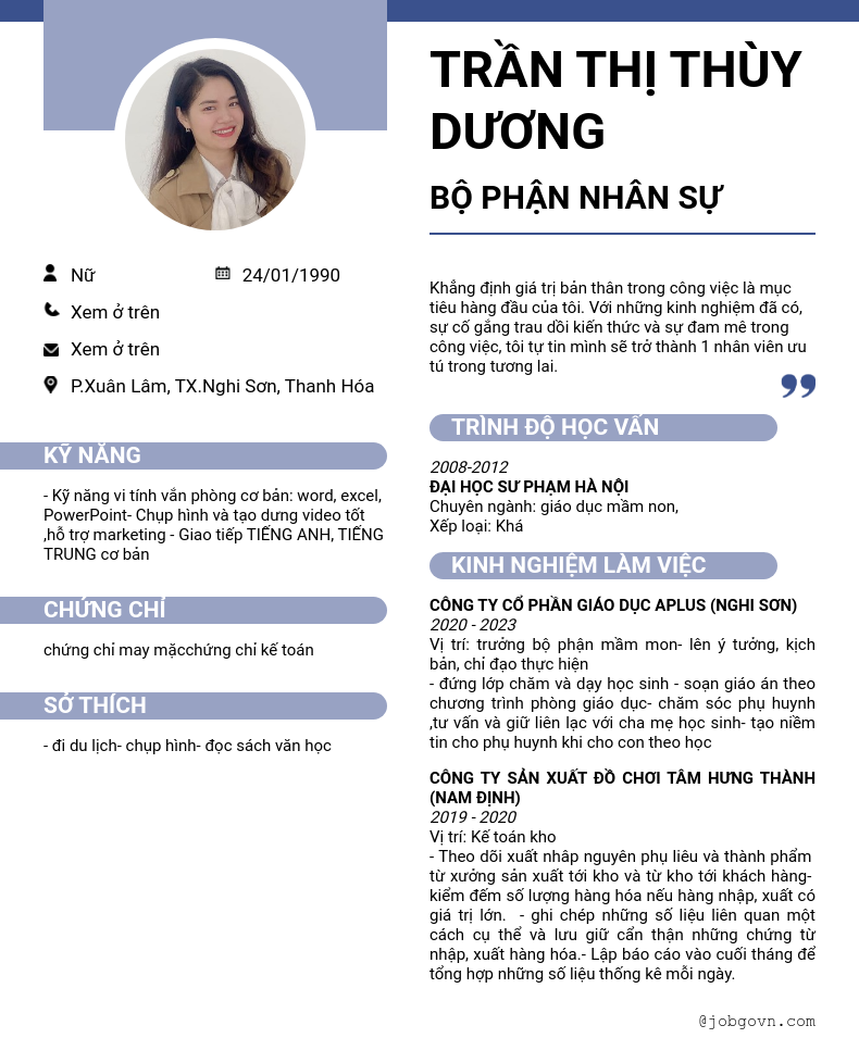 Chi tiết trong CV