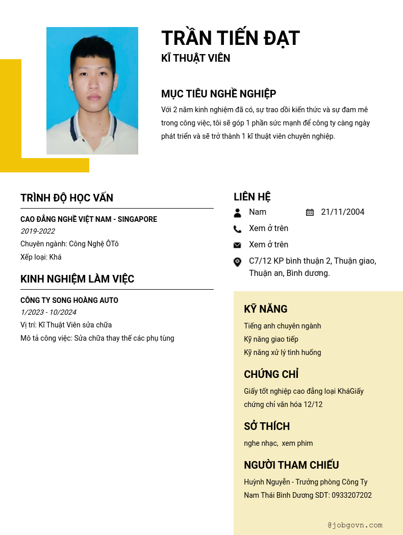 1 năm kinh nghiệm