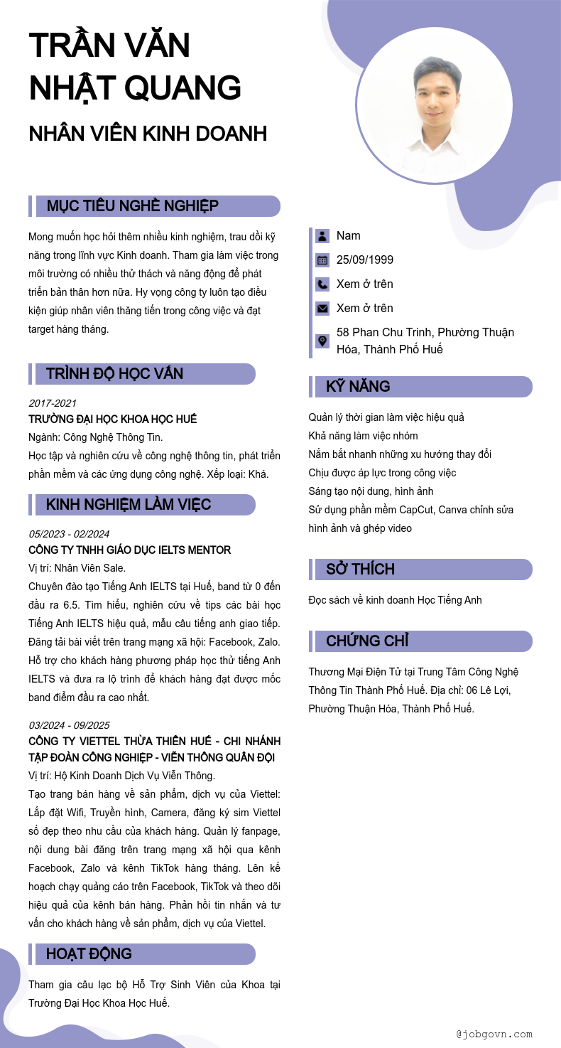 TRẦN VĂN NHẬT QUANG (Đang tìm việc)