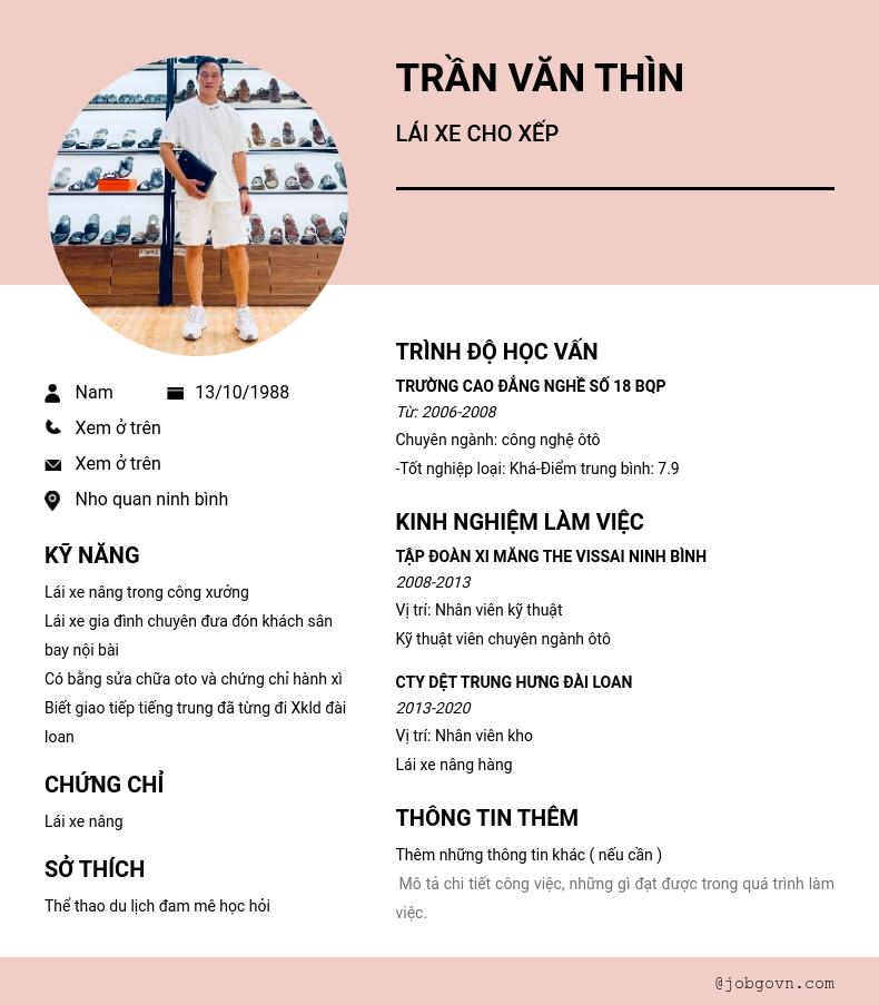 Chi tiết trong CV