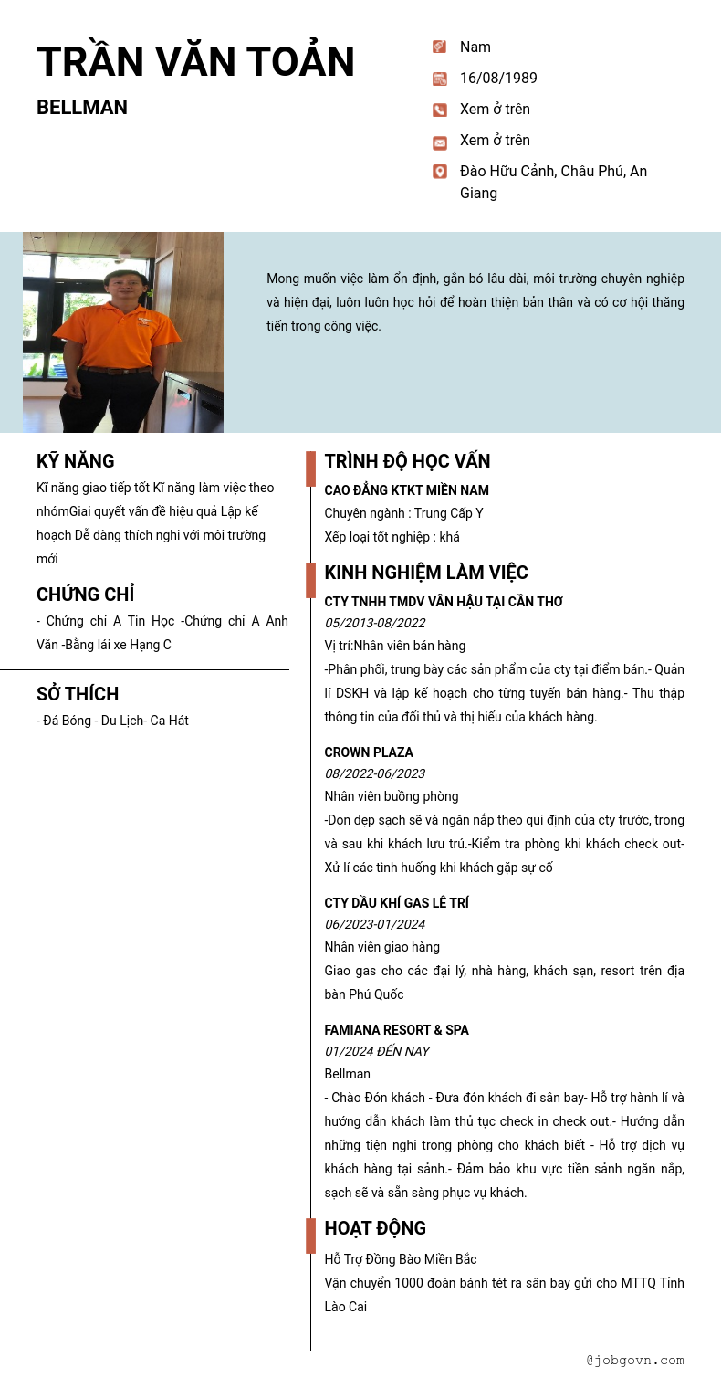 Chi tiết trong CV