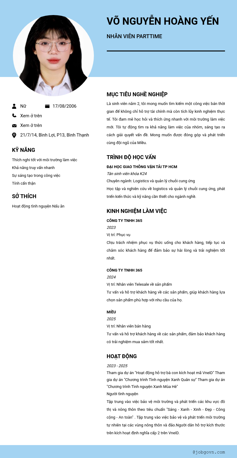Võ nguyễn hoàng yến (Đang tìm việc)