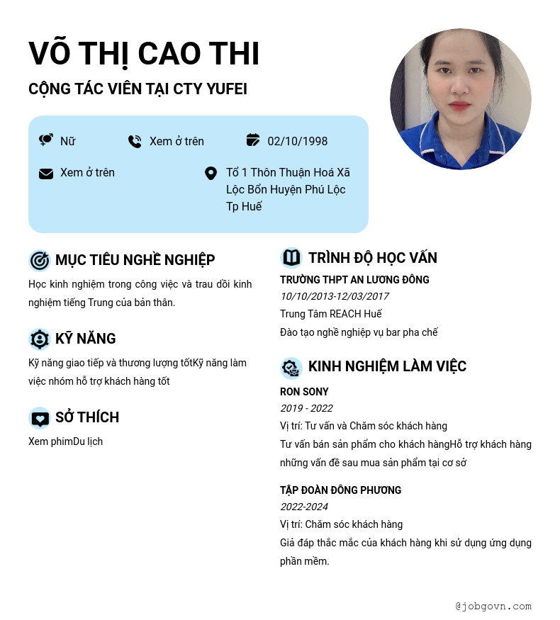 Chi tiết trong CV