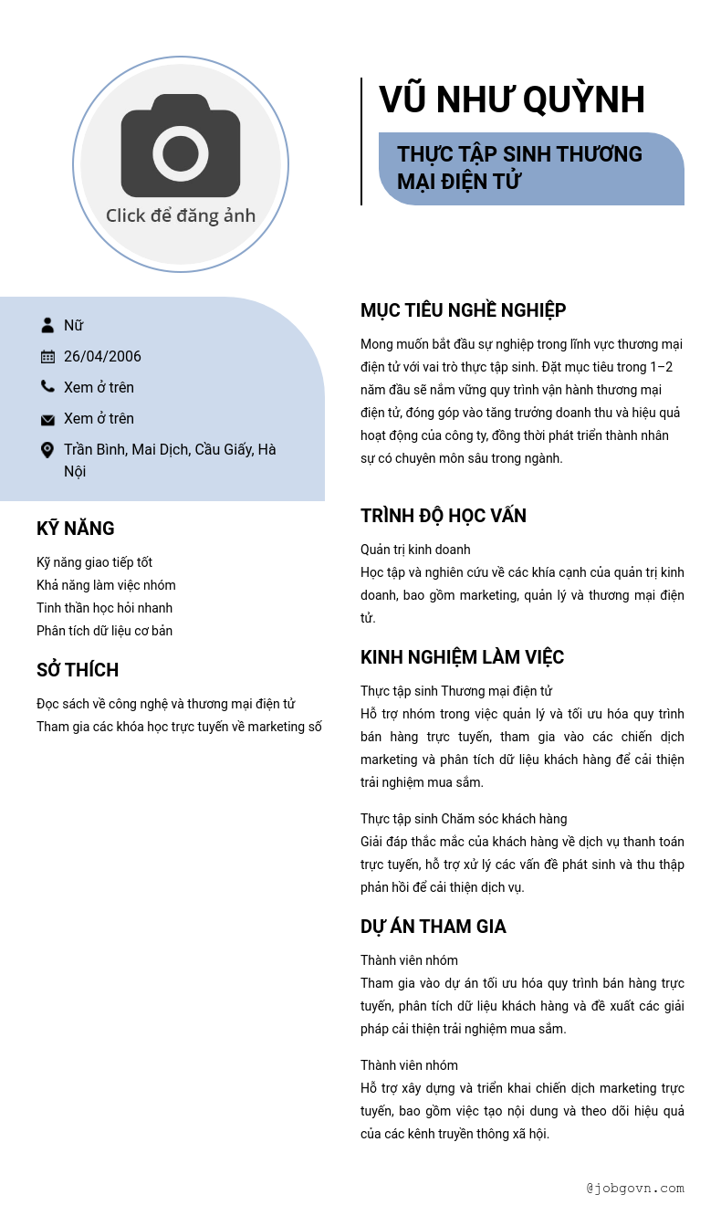 Chi tiết trong CV