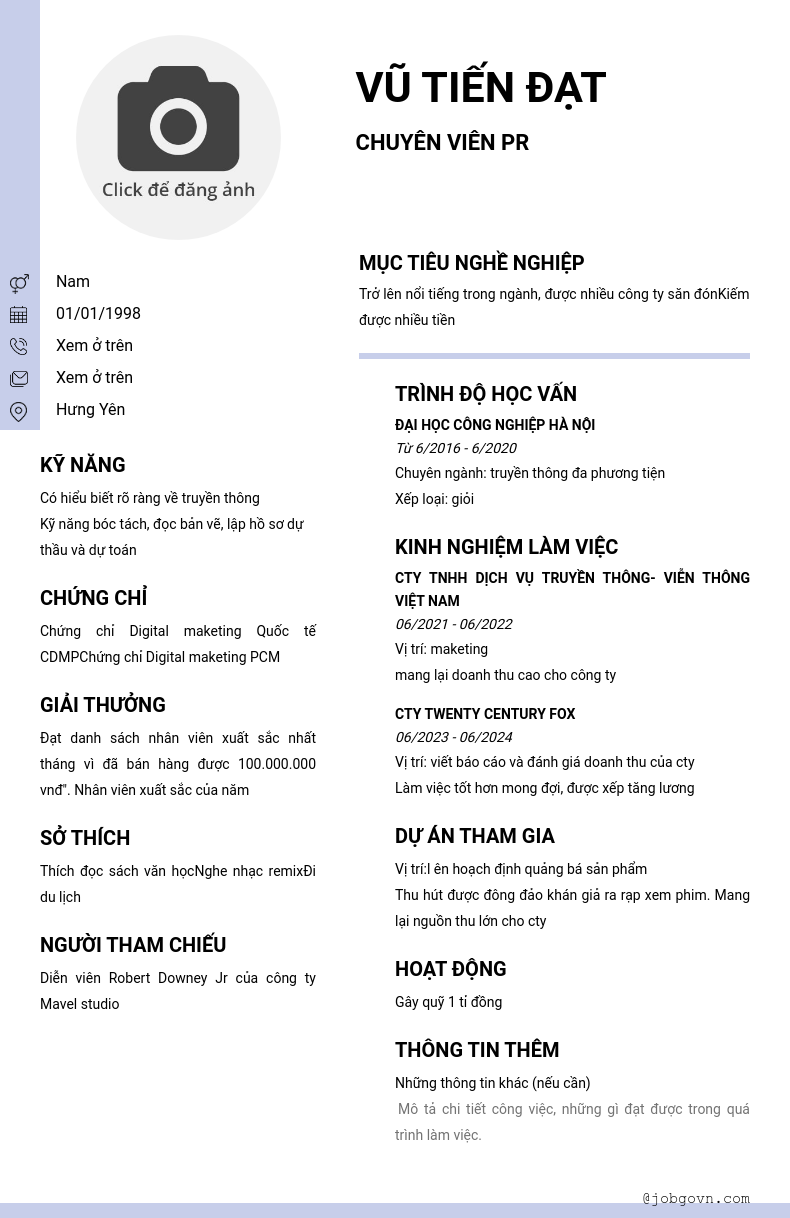CV đã tạo
